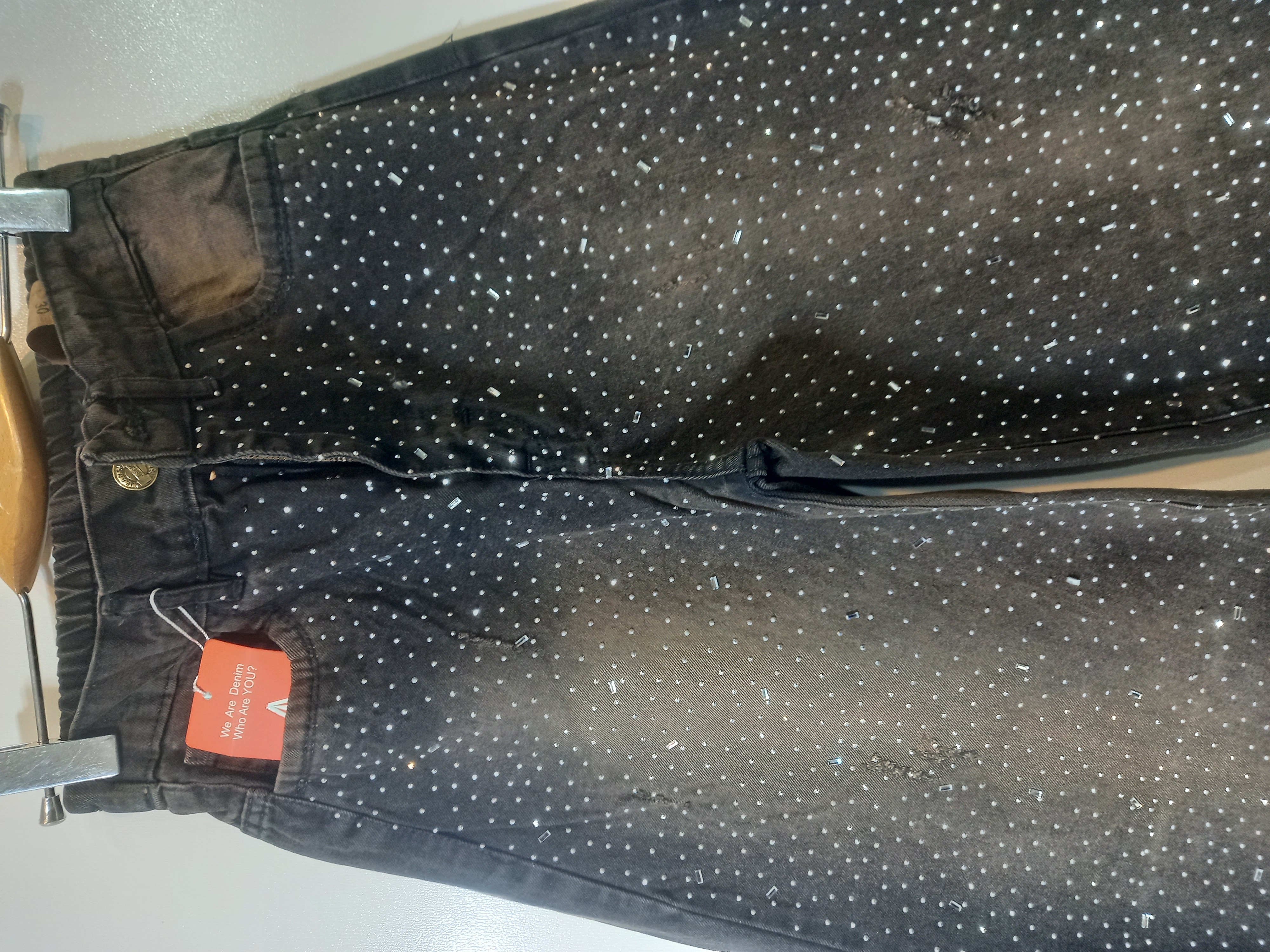 شلوار جین بگ زنانه (FASHION) شست سفارشی سوپر نگین دار کد BNG939